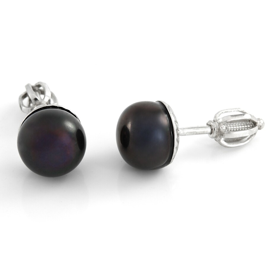 Náušnice bílé zlato Perla tmavá