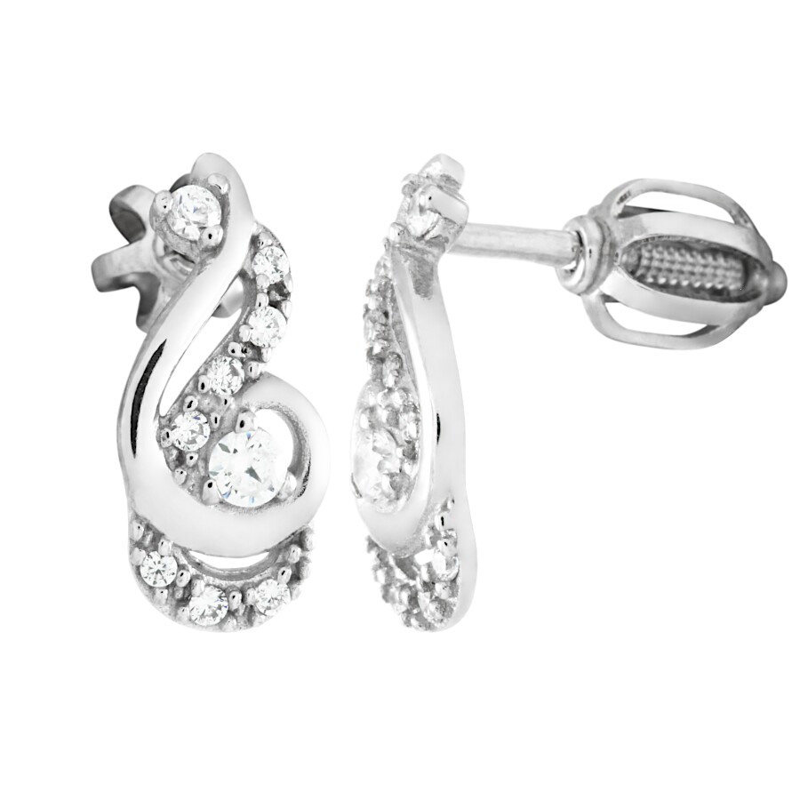 Náušnice bílé zlato Smyčka zdobená zirkony