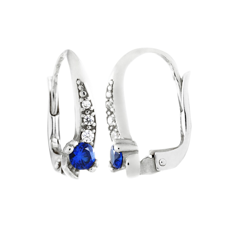 Náušnice bílé zlato Vlnka s tmavě modrým zirkonem
