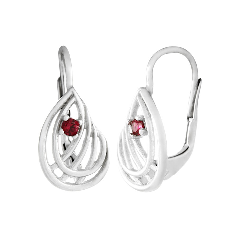 Náušnice bílé zlato Vlnky s červeným zirkonem