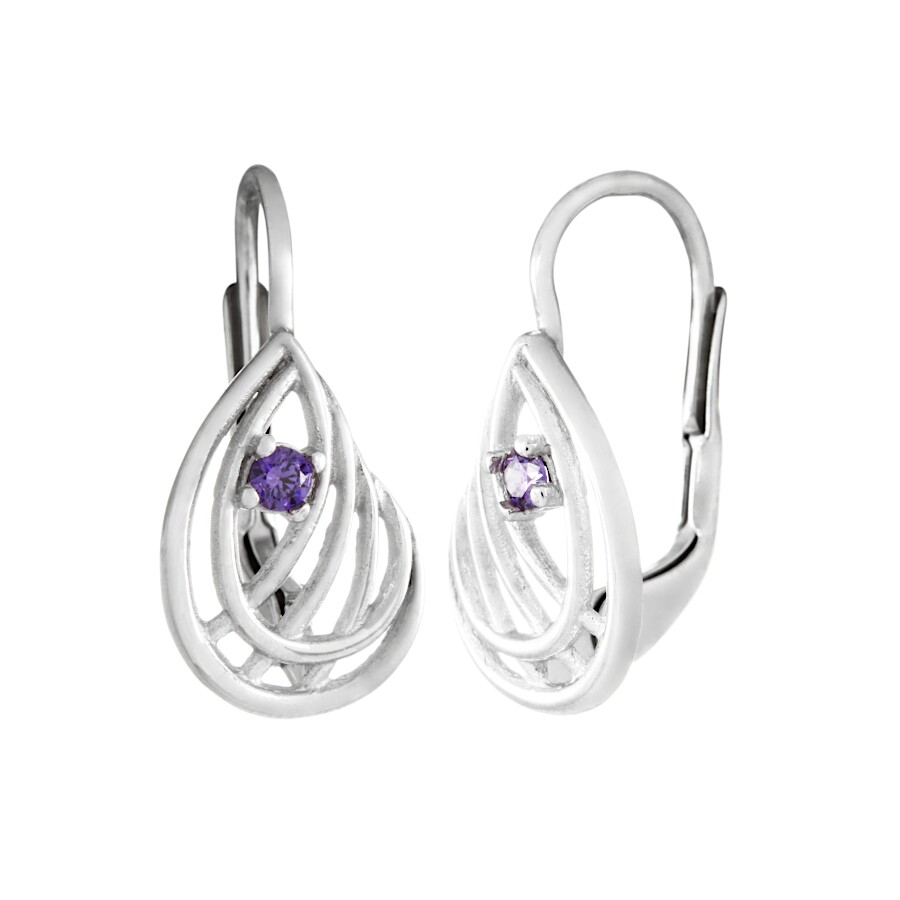 Náušnice bílé zlato Vlnky s fialovým zirkonem