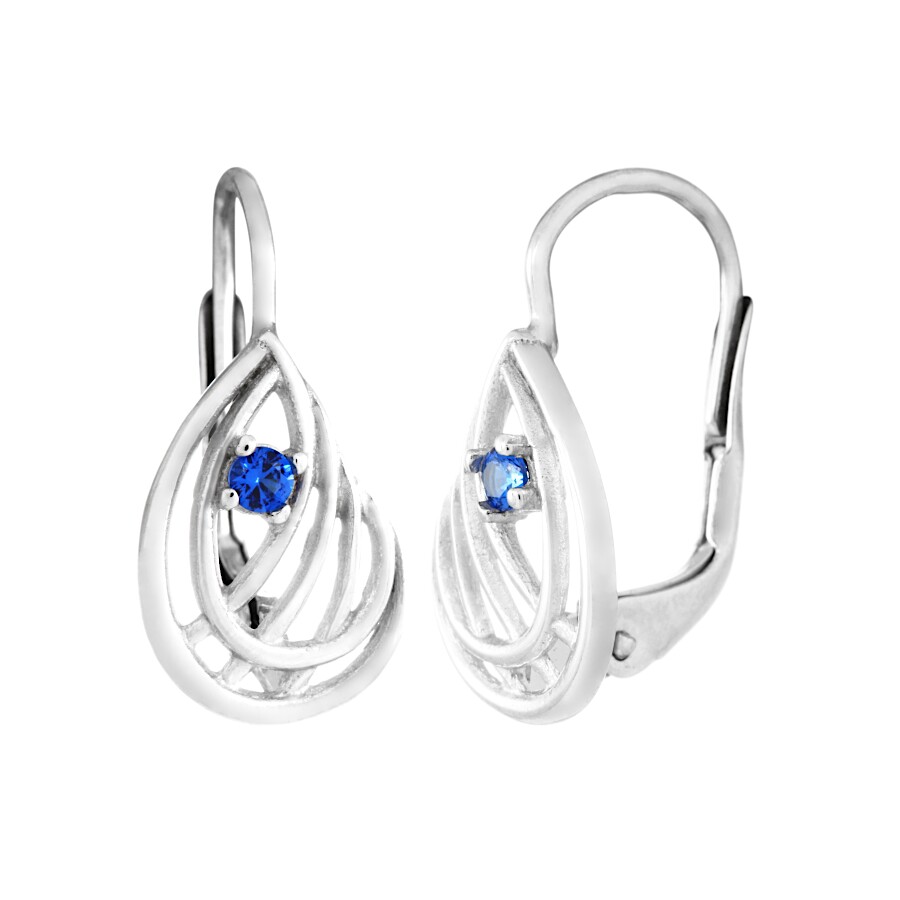 Náušnice bílé zlato Vlnky s tmavě modrým zirkonem