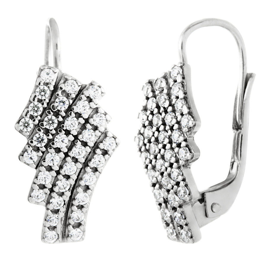 Náušnice bílé zlato Vlnky se zirkony ze soupravy