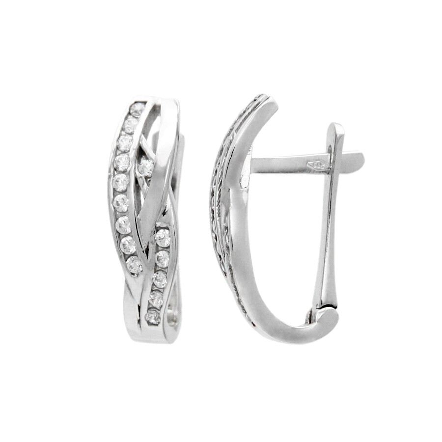 Náušnice bílé zlato Vlnky se zirkony