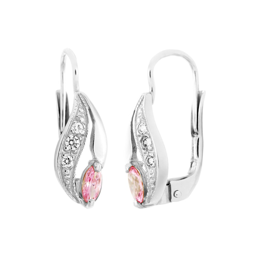 Náušnice bílé zlato Vlnky střed růžový zirkon