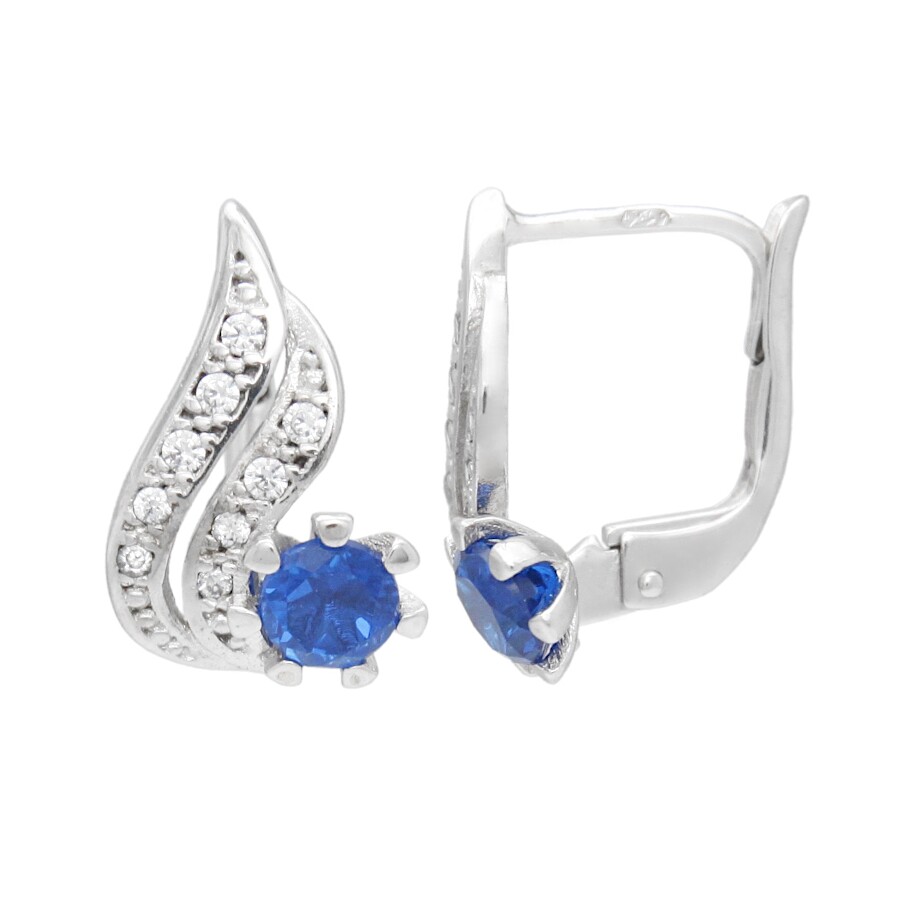 Náušnice bílé zlato Vlnky střed tmavě modrý zirkon