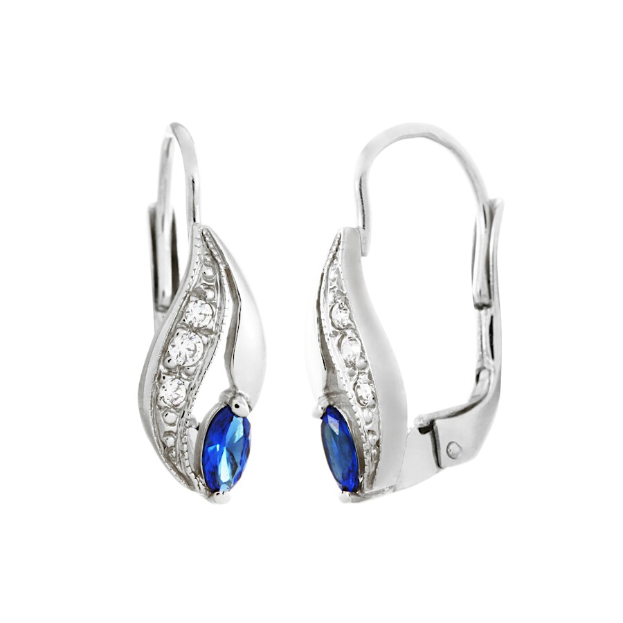 Náušnice bílé zlato Vlnky střed tmavě modrý zirkon