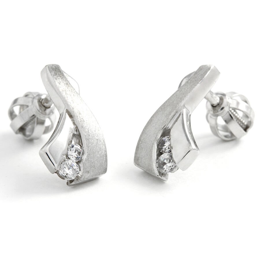 Náušnice bílé zlato Vlnky zkřížené mat-lesk se zirkony