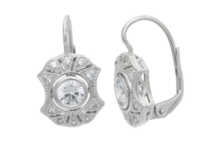 Náušnice bílé zlato ze soupravy Šváb s bílým zirkonem NO-151-1a-b