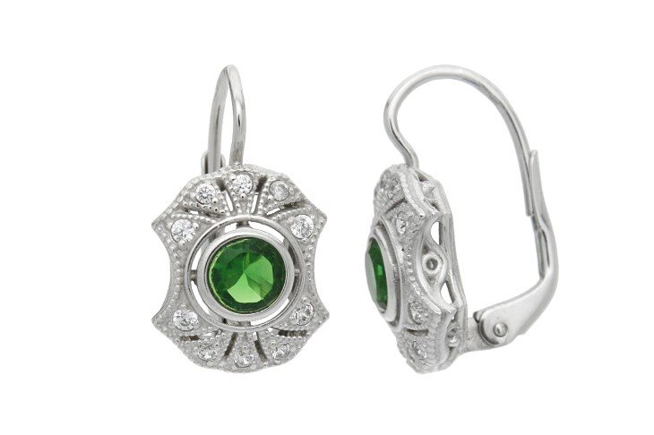 Náušnice bílé zlato ze soupravy Šváb se zeleným zirkonem NO-151-1a-z