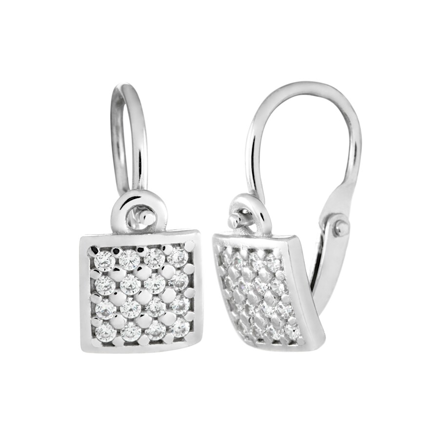 Náušnice dětské bílé zlato Čtverec se zirkony