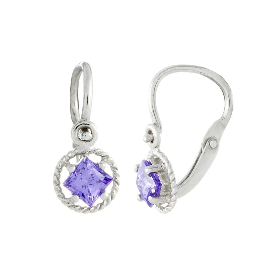 Náušnice dětské bílé zlato Čtvereček v kolečku se zirkonem SL-96907f