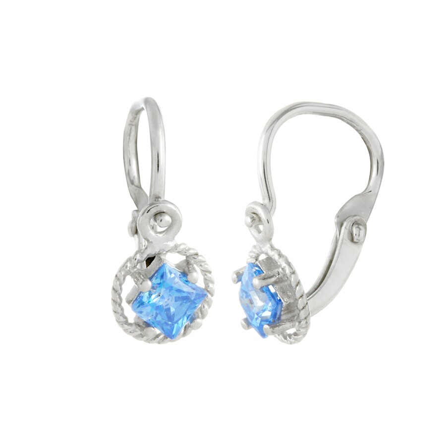 Náušnice dětské bílé zlato Čtvereček v kolečku se zirkonem SL-96907m