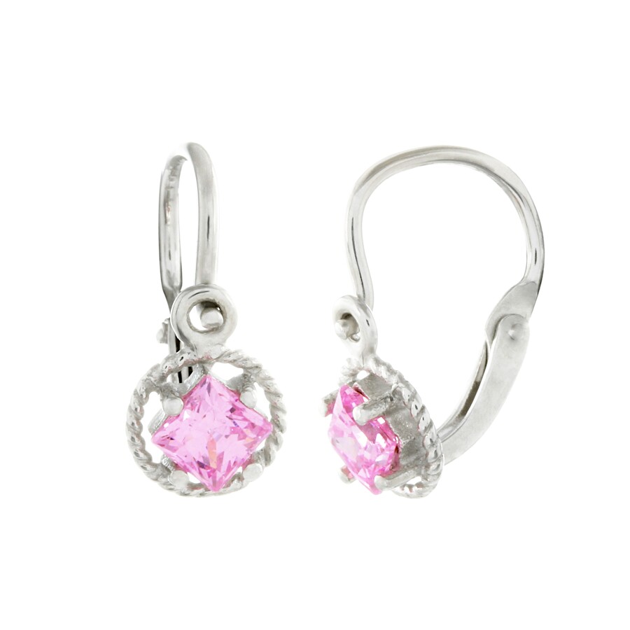 Náušnice dětské bílé zlato Čtvereček v kolečku se zirkonem SL-96907r