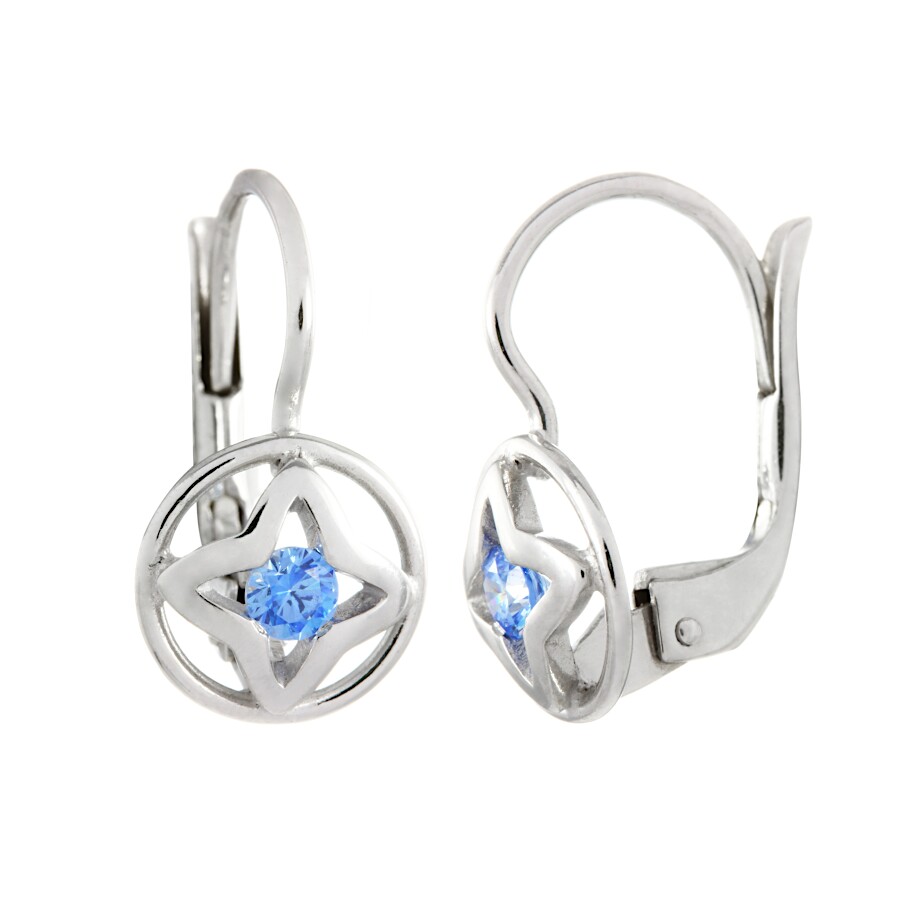 Náušnice dětské bílé zlato Hvězdička s modrým zirkonem v kolečku
