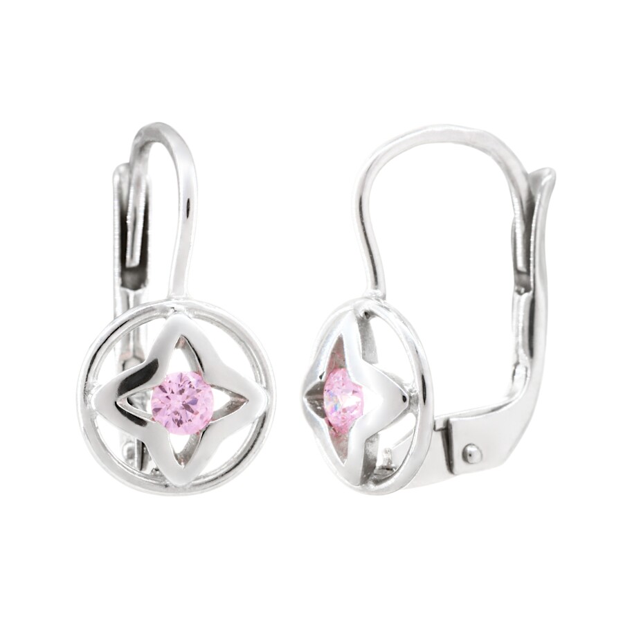 Náušnice dětské bílé zlato Hvězdička s růžovým zirkonem v kolečku