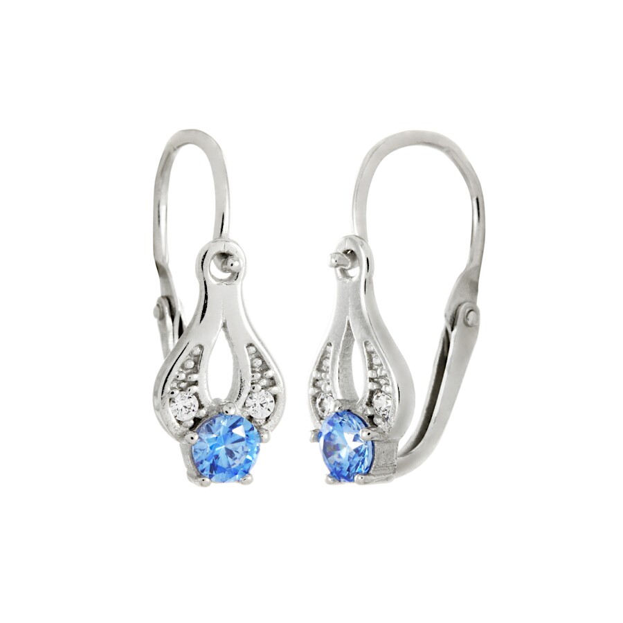 Náušnice dětské bílé zlato Kapka střed světle modrý zirkon