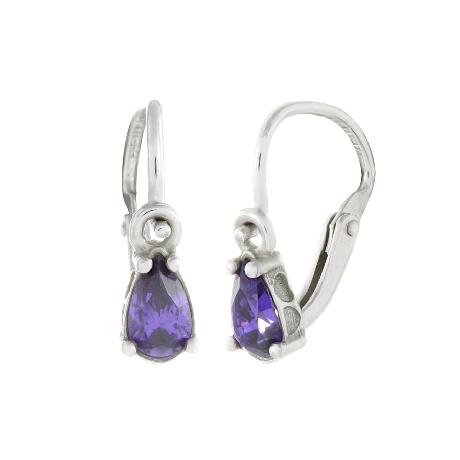 Náušnice dětské bílé zlato Kapky fialové