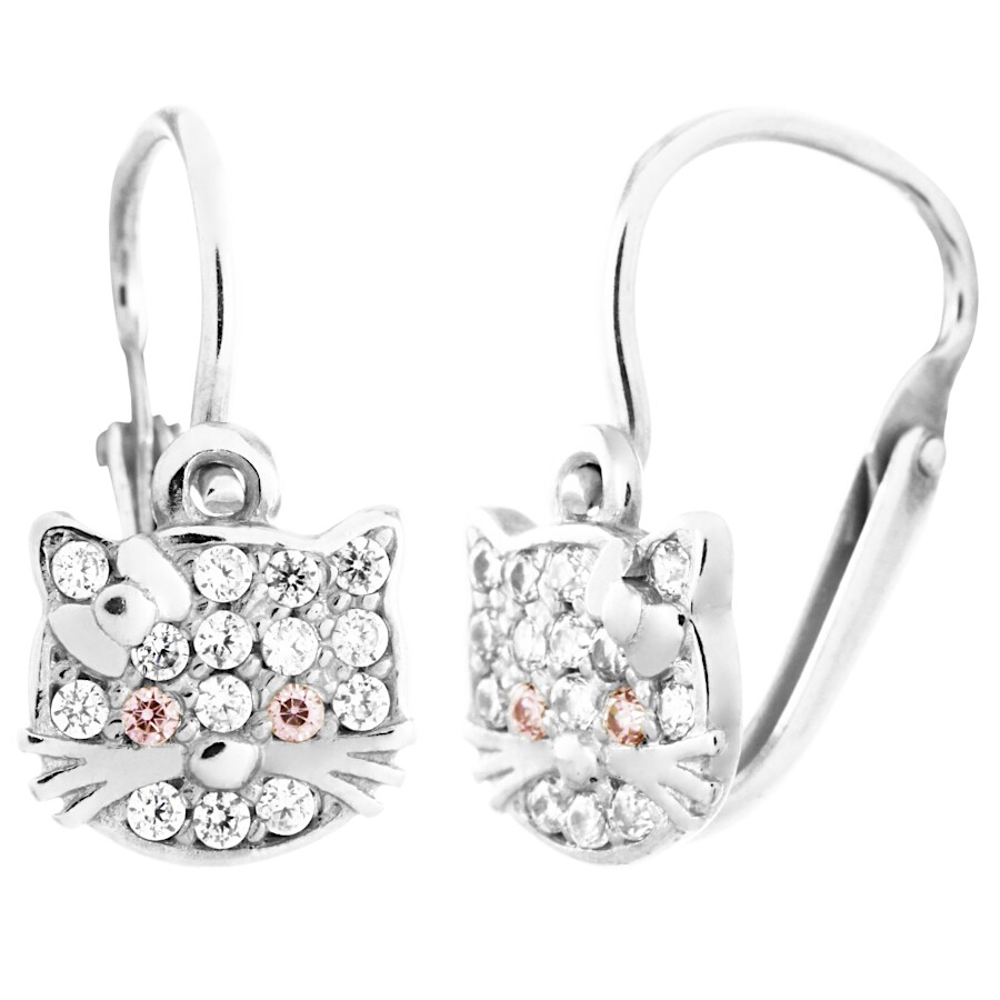 Náušnice dětské bílé zlato Kočky oči růžové