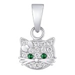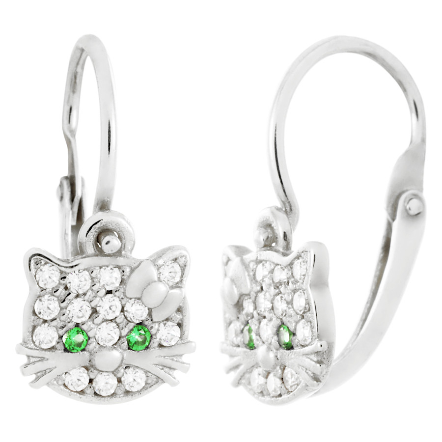 Náušnice dětské bílé zlato Kočky oči zelené