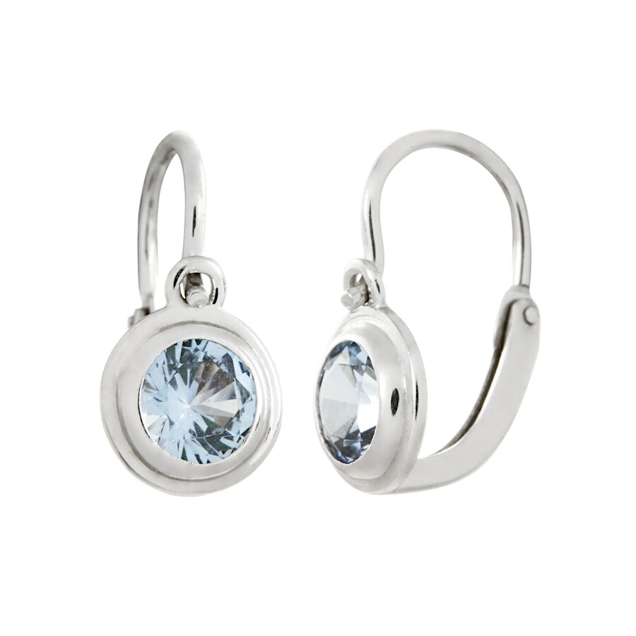 Náušnice dětské bílé zlato Kolečka světle modré zirkony