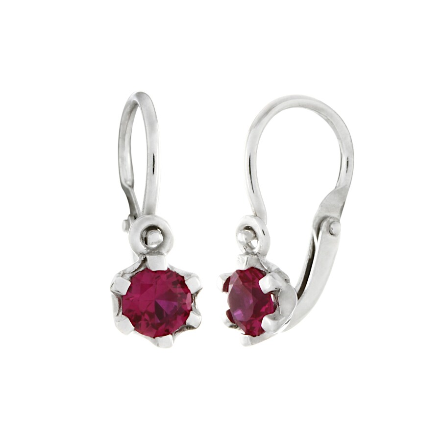 Náušnice dětské bílé zlato Kolečko červený zirkon