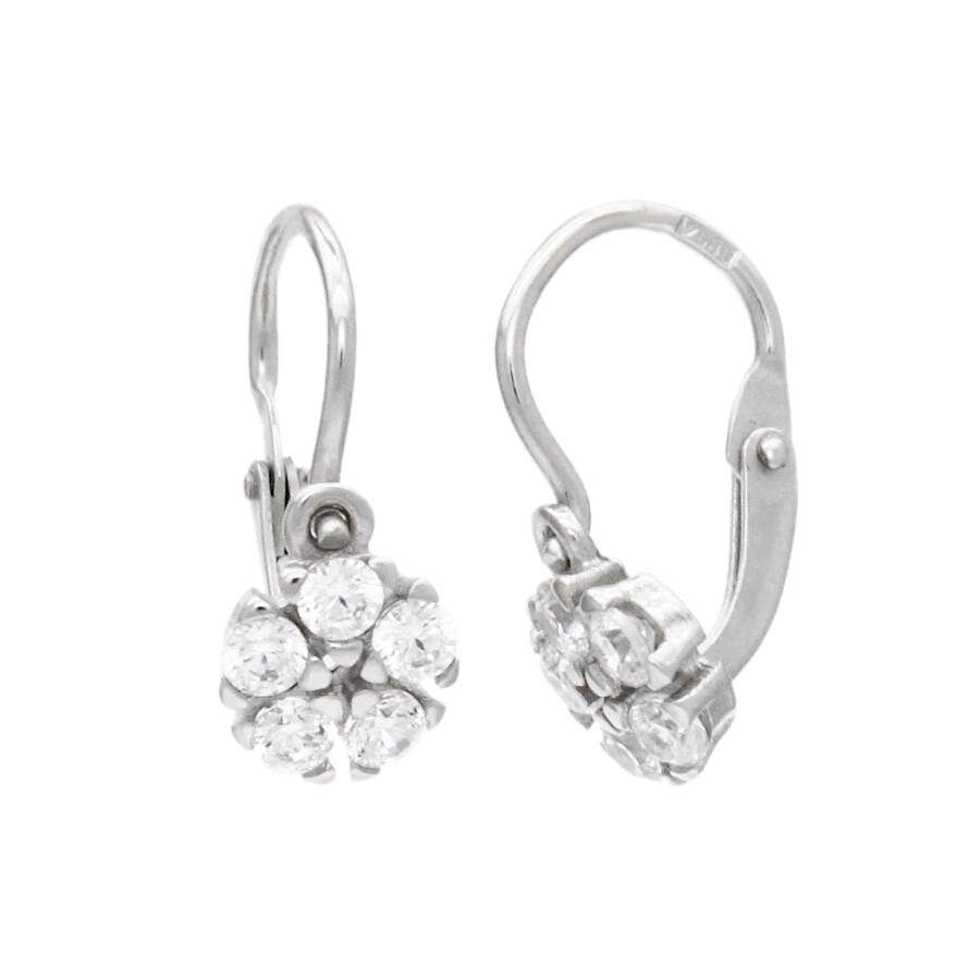 Náušnice dětské bílé zlato Květinka bílé zirkony