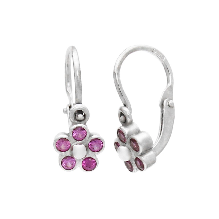 Náušnice dětské bílé zlato Květinka červené zirkony