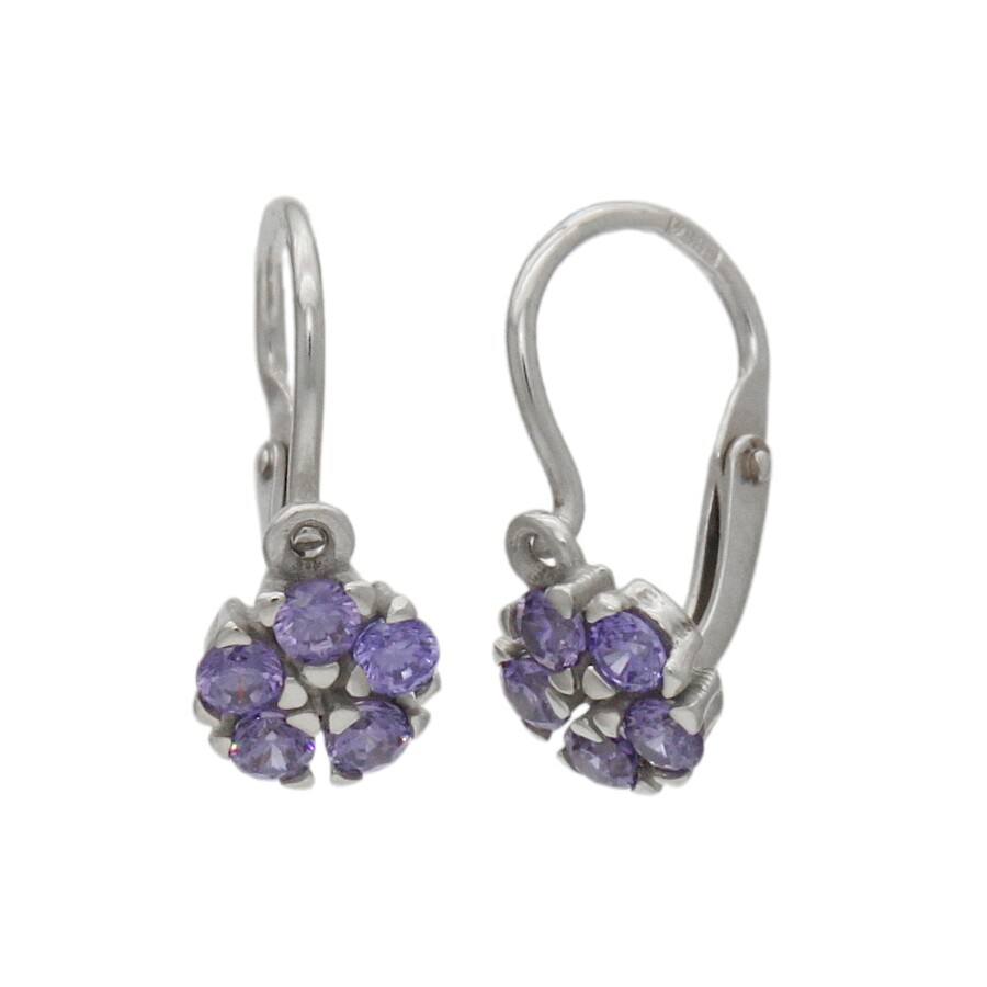 Náušnice dětské bílé zlato Květinka fialové zirkony