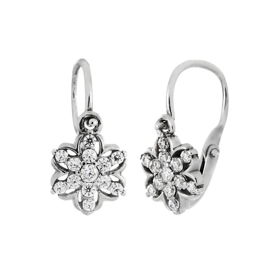 Náušnice dětské bílé zlato Květinka střed bílý zirkon