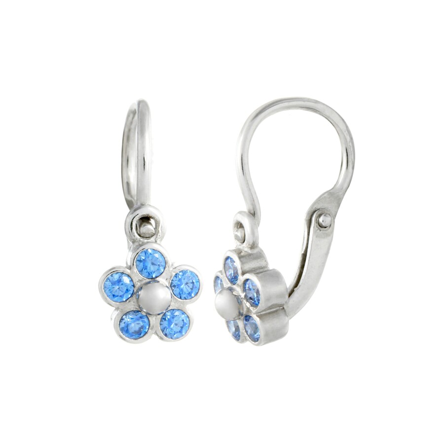 Náušnice dětské bílé zlato Květinka světle modré zirkony