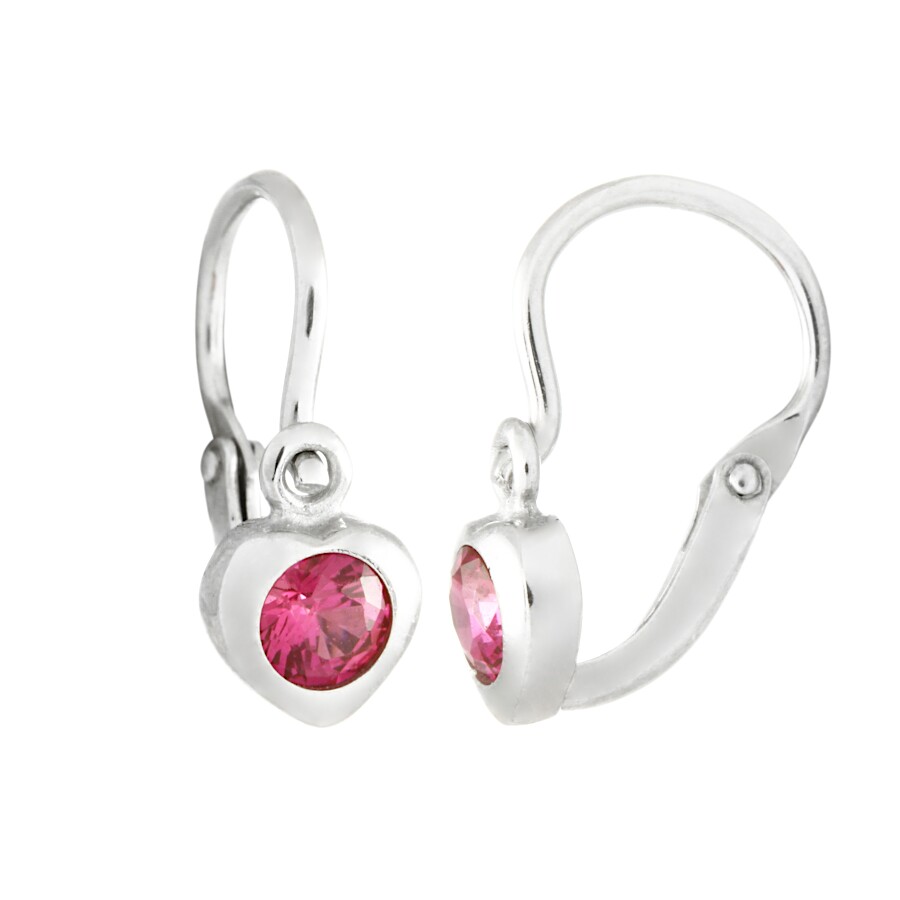 Náušnice dětské bílé zlato Srdíčko červený zirkon