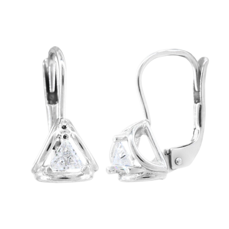 Náušnice dětské bílé zlato Trojúhelníky s bíllým zirkonem