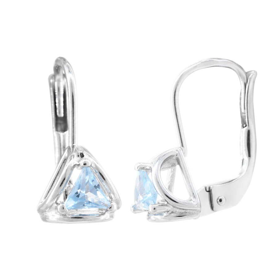 Náušnice dětské bílé zlato Trojúhelníky se světle modrý zirkonem
