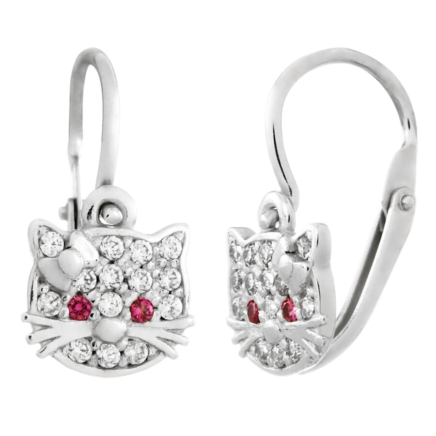 Náušnice stříbrné dětské Kočky červené oči