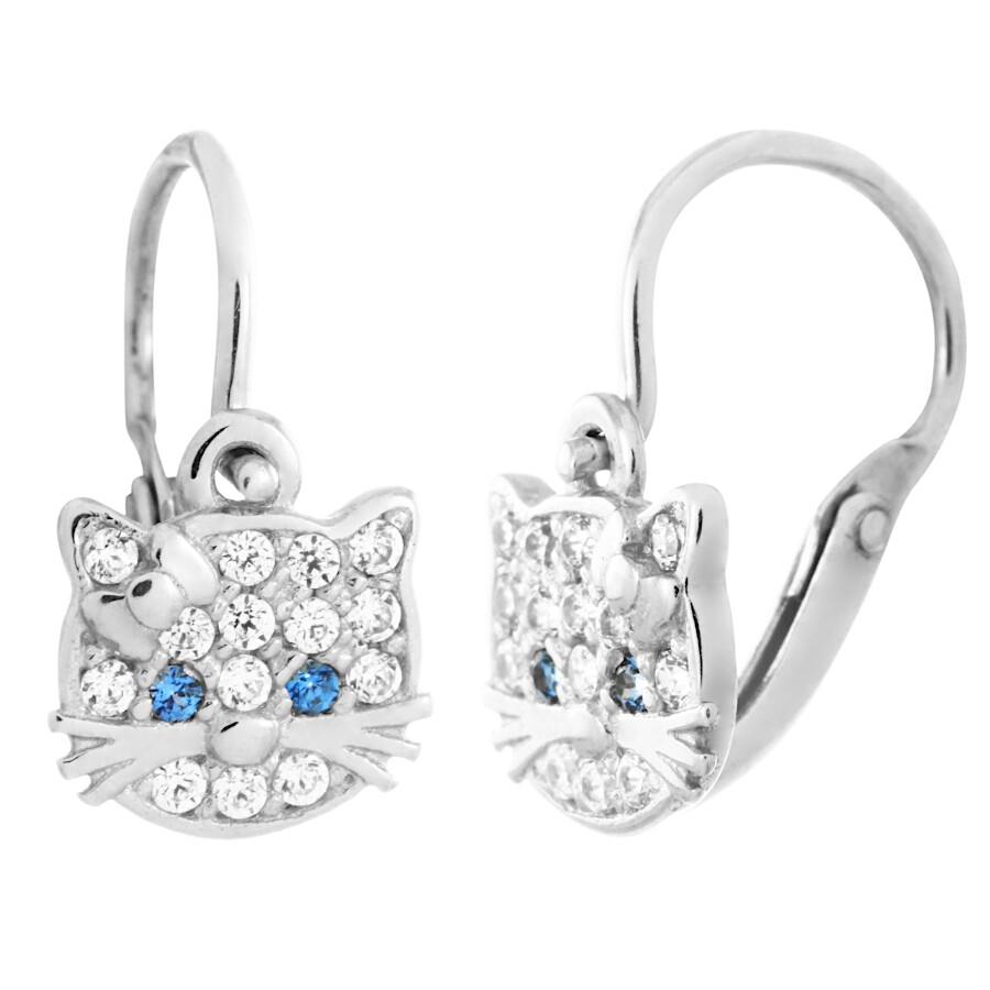 Náušnice stříbrné dětské Kočky tmavě modré oči