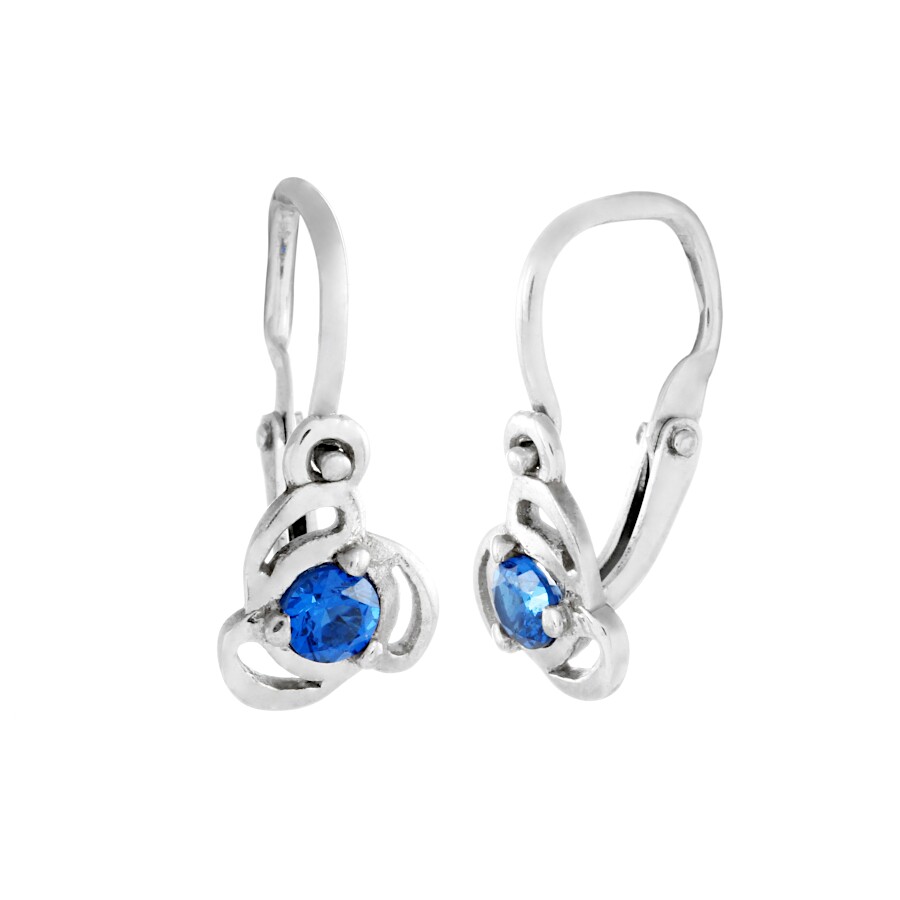Náušnice stříbrné dětské Květinka střed tmavě modrý zirkon