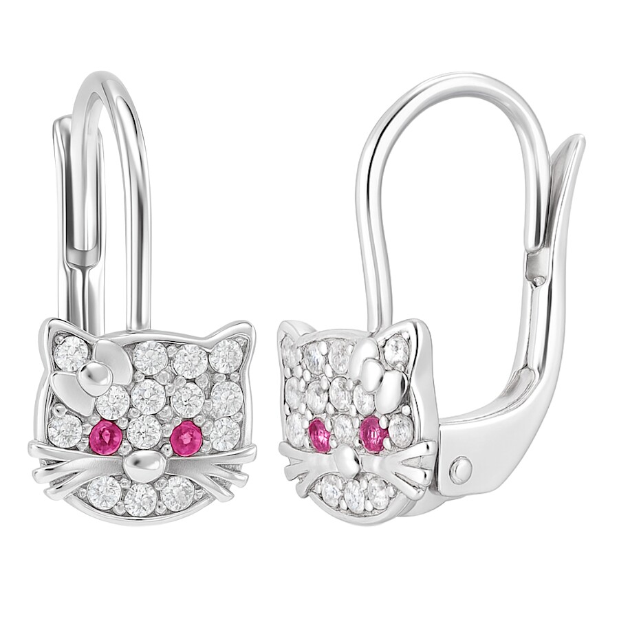 Náušnice stříbrné Kočky červené oči