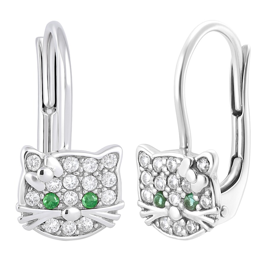 Náušnice stříbrné Kočky zelené oči