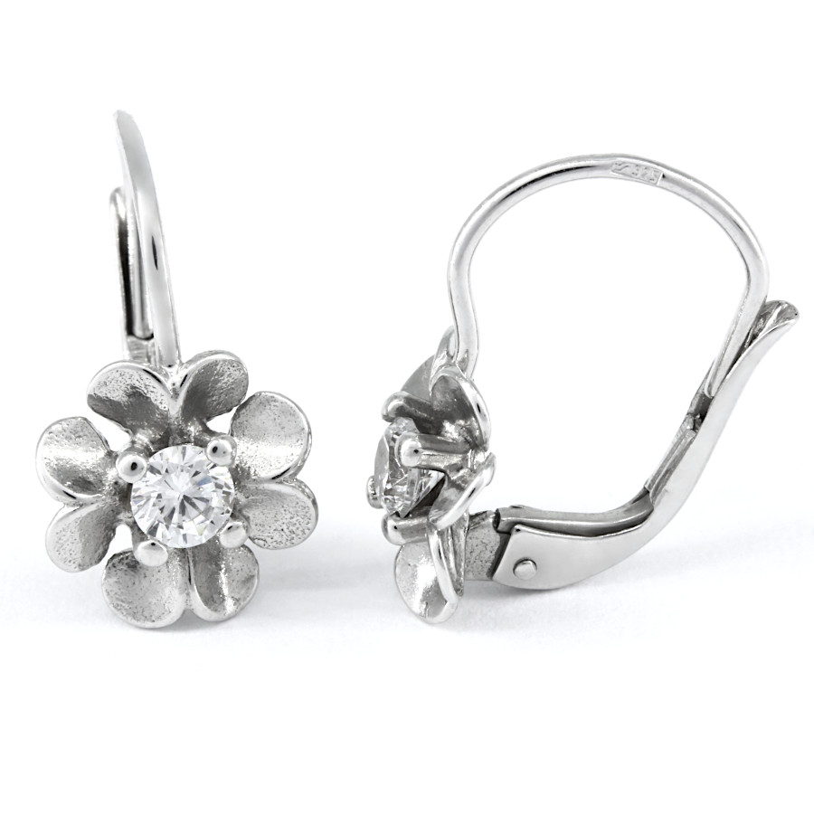Náušnice stříbrné Květina střed bílý zirkon