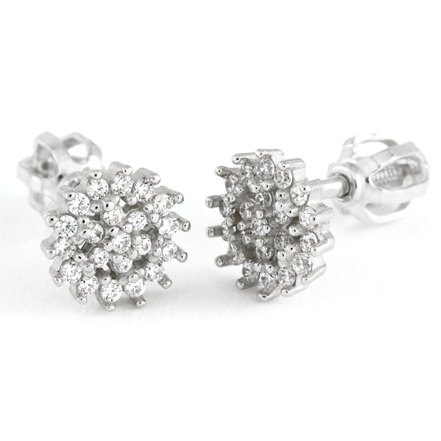 Náušnice stříbrné Květinka střed bílé zirkony