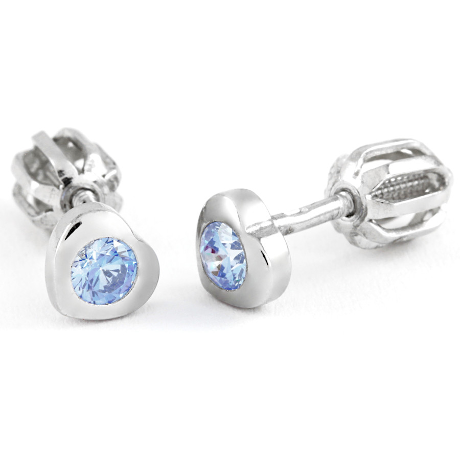 Náušnice stříbrné Srdíčko střed světle modrý zirkon