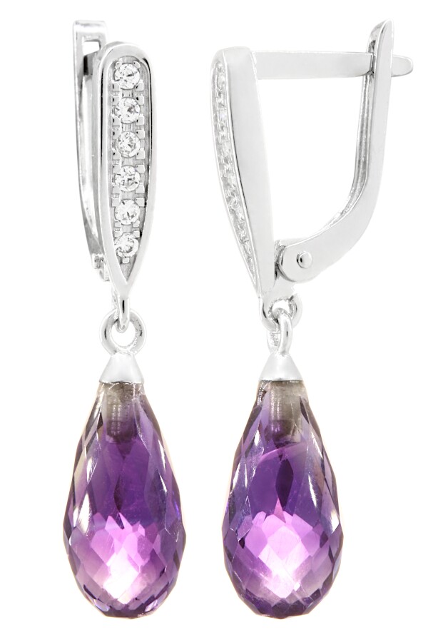 Náušnice visací bílé zlato Ametyst přírodní kapka