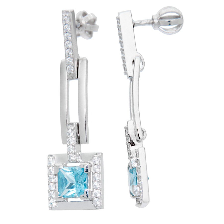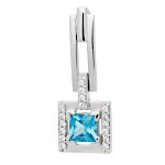 Náušnice visací bílé zlato Čtverec střed syntetický akvamarín se zirkony