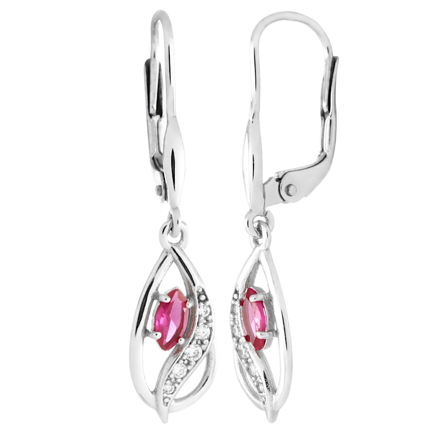 Náušnice visací bílé zlato Kapka střed červený zirkon