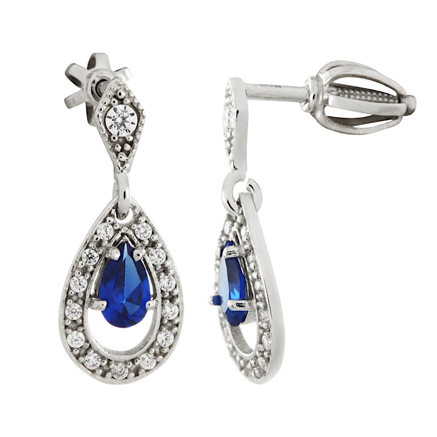 Náušnice visací bílé zlato Kapka střed spinel modrý