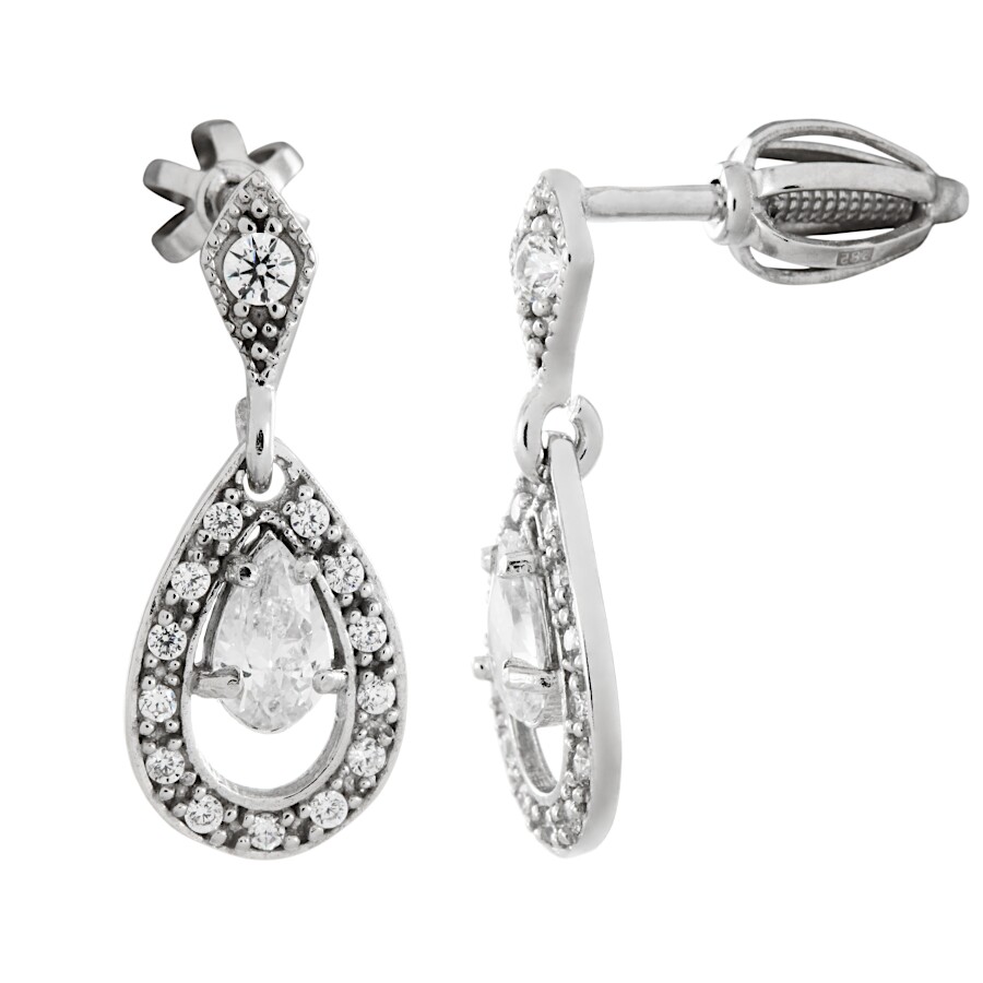 Náušnice visací bílé zlato Kapka střed zirkon bílý