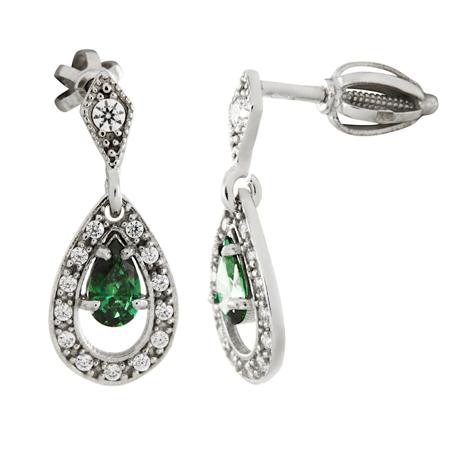 Náušnice visací bílé zlato Kapka střed zirkon zelený