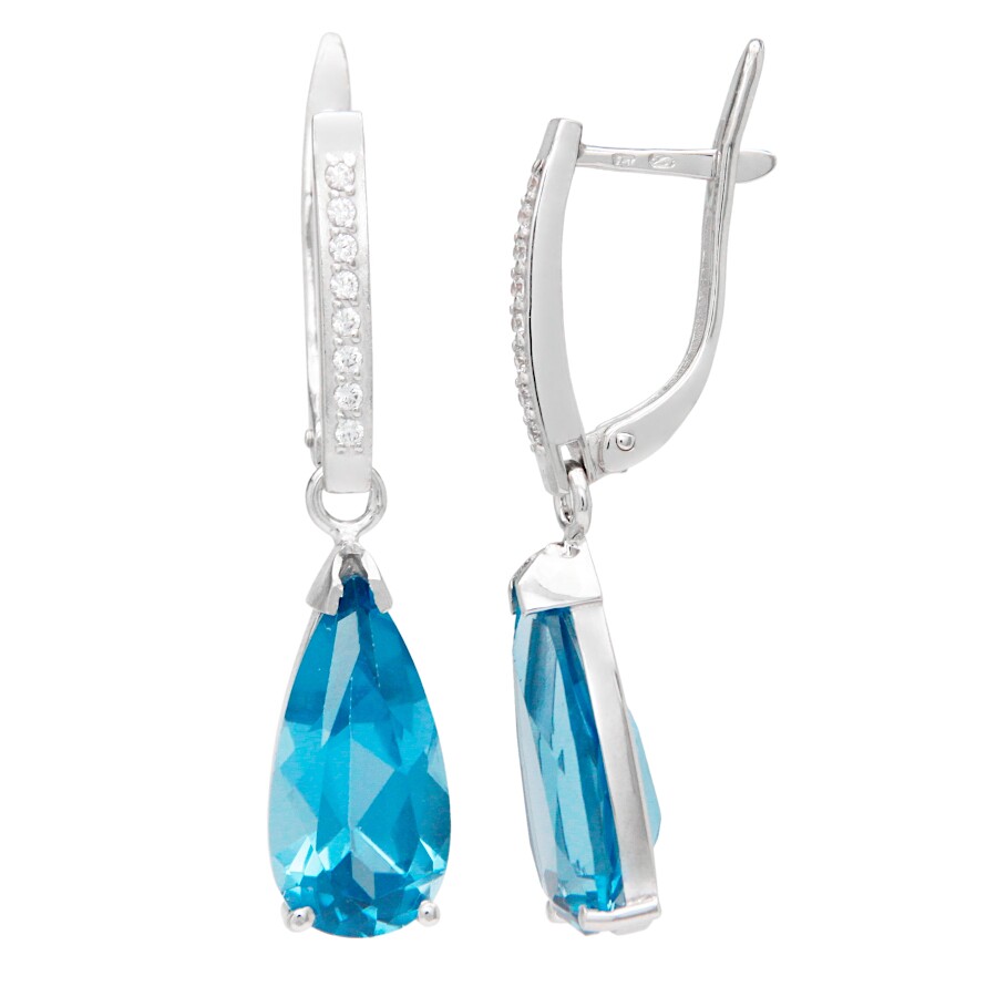 Náušnice visací bílé zlato Kapka velká akvamarín syntetický se zirkony