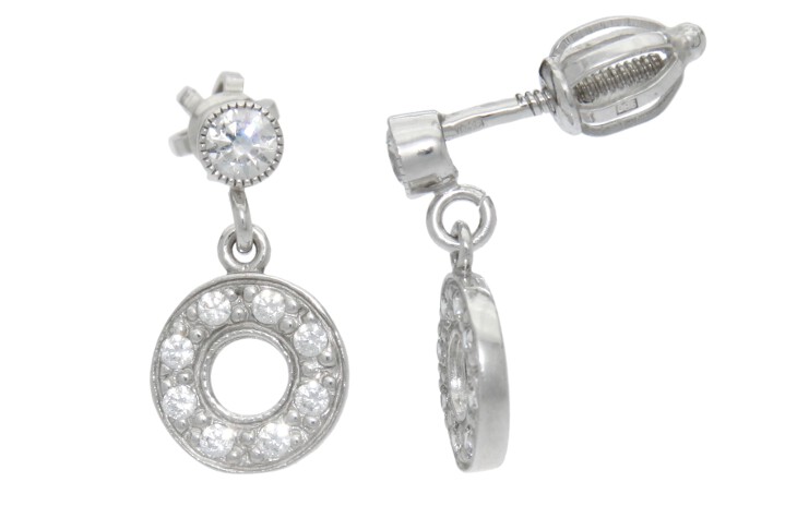 Náušnice visací bílé zlato Kolečko se zirkony SL-23307